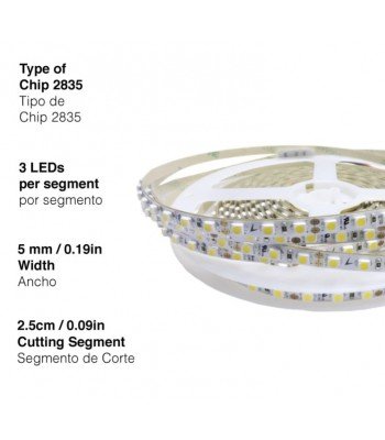 Diseñadas para profesionales y aficionados a la iluminación, las tiras LED son muy fáciles de usar e instalar. Esta tira LED SMD 2835 blanco neutro (4.000°K) ofrece una alta intensidad lumínica y es perfecta para decorar cualquier espacio tanto en el hogar como en espacios comerciales, es perfecta para la iluminación interior ya que proporciona una luz homogénea de alto rendimiento, ideal para resaltar perímetros y contornos de techos.