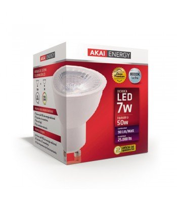 Reemplazo directo de dicroicas halógenas. Dos aperturas de luz. 38º spot y 100º ambiental. Alto rendimiento lumínico 85lm/Watt. Carcaza de termoplástico y aluminio. Vida útil 25.000 horas. Garantía de 2 años.