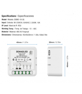 INTERRUPTOR WIFI 10A 90 250V 220W LED