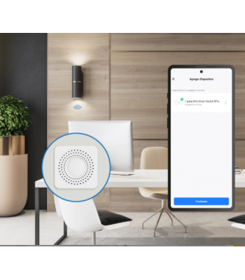 Compacto y resistente (fabricado en ABS ignífugo), puede instalarse en superficie o empotrado. Soporta hasta 10A / 2200W, funciona con WiFi 2.4GHz y también permite el control por radiofrecuencia (RF). Perfecto para crear escenas personalizadas, agrupar dispositivos y controlar varios ambientes desde un solo equipo.
