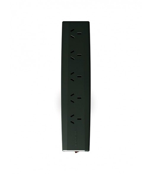Configuración: Ficha de conexión 2P+T 10A a 5 tomacorrientes 2P+T 10A + cargador de 2 conectores USB de capacidad simultánea 2A - 5Vcc. con cortacircuito térmico de 10A. 250V e indicador luminoso.